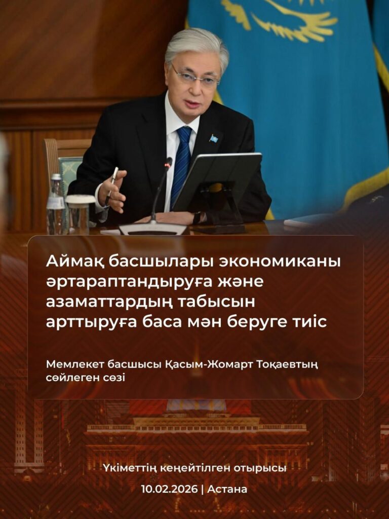 2026 жылдың 10 ақпан күні Үкіметтің кеңейтілген отырысында Мемлекет басшысы Қасым-Жомарт Тоқаевтың сөйлеген сөздерінен үзінділер