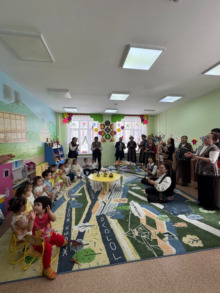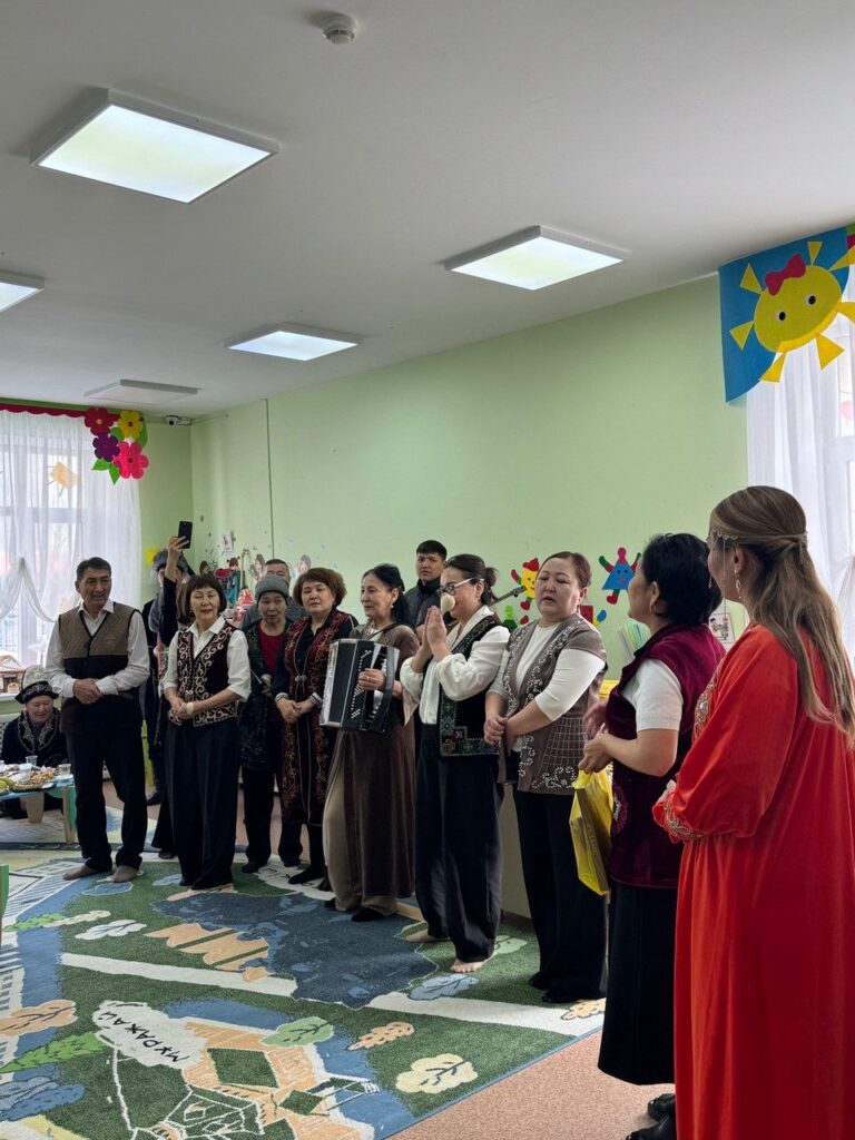 Кездесу барысында педагогтар ән шырқап, мерекелік көңіл-күй сыйлап, кішкентай бүлдіршіндерге ерекше қуаныш сыйлады.